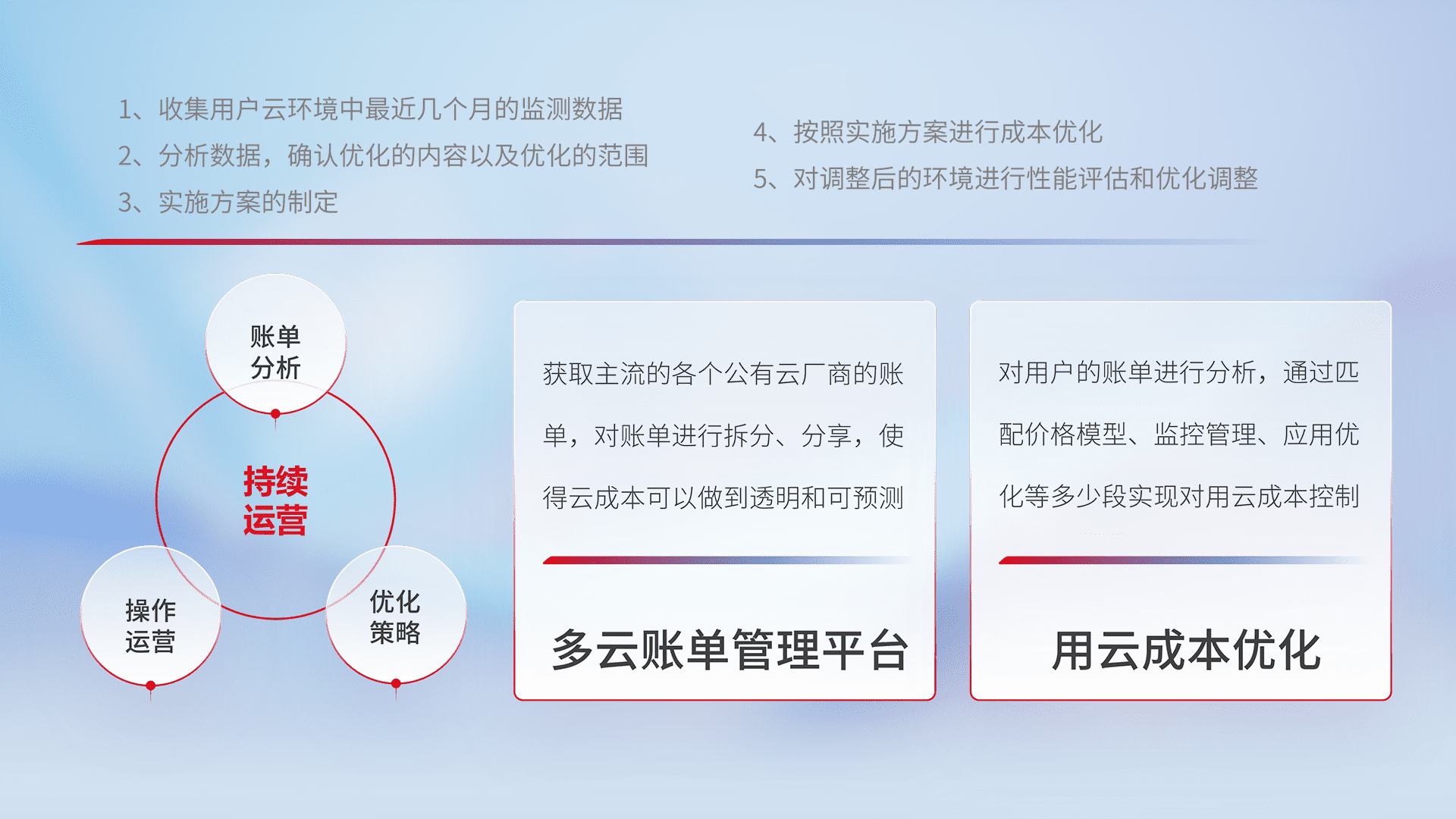 运用智能化工具分析云资源,,,,提供日常费用可视化工具,,,,自动账单拆分,,,,成本优化云上费用,,,,降本增效。。。